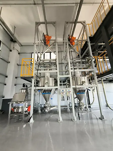 Downstream Integration: Complete system engineering for connection to mixers, blenders, weigh hoppers, bagging stations, and process vessels.
